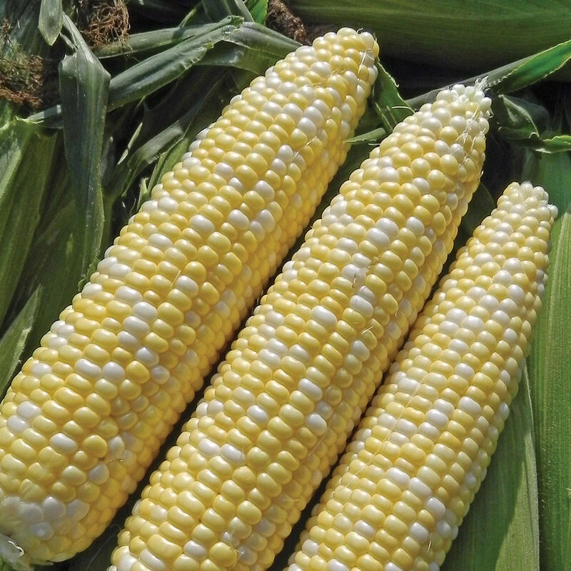 A tasty synergistic bred for low-input systems. 8″ ears are refined and have both great tip fill and excellent flavor. Plenty of flags and tight, dark green husks create an attractive package. Good cool-soil vigor for a synergistic type. 6 1/2–7′ tall plants.