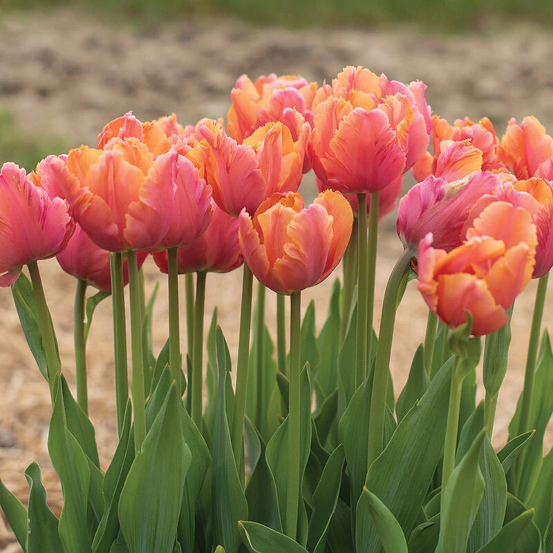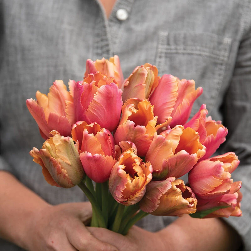 2–3″ tall blooms, which are indeed amazing in color. Lightly scalloped petals are mostly apricot and rose with touches of green. Flowering in late spring, Amazing Parrot makes a beautiful end to the tulip season. Lightly fragrant. Tall stems can be susceptible to breaking and should be handled carefully for cut flowers. NOTE: Bulbs do not come pre-chilled; if growing in hardiness Zones 8–10, see growing information (below) for pre-chilling instructions.
