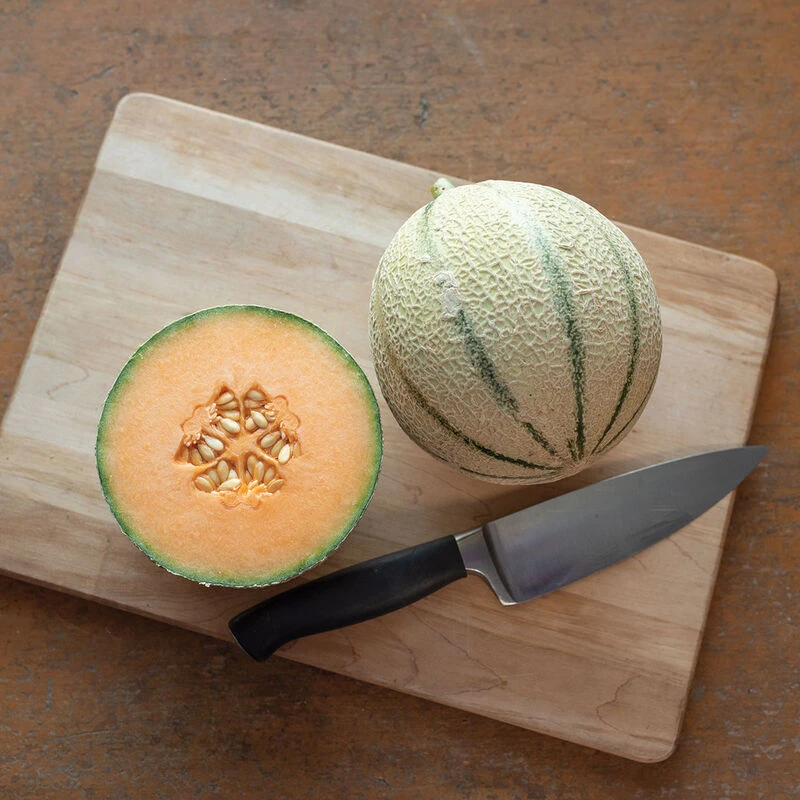Very sweet with mild aromatics reminiscent of a traditional Charentais. Classic looks and smaller size (2โ3 lb.) make this a great melon for fresh market sales. Stores 6 days or more at room temperature and up to 18 days refrigerated. Harvest at forced slip or cut from the vine when the skin begins turning yellow. Bred by Jason Cavatorta of EarthWork Seeds.