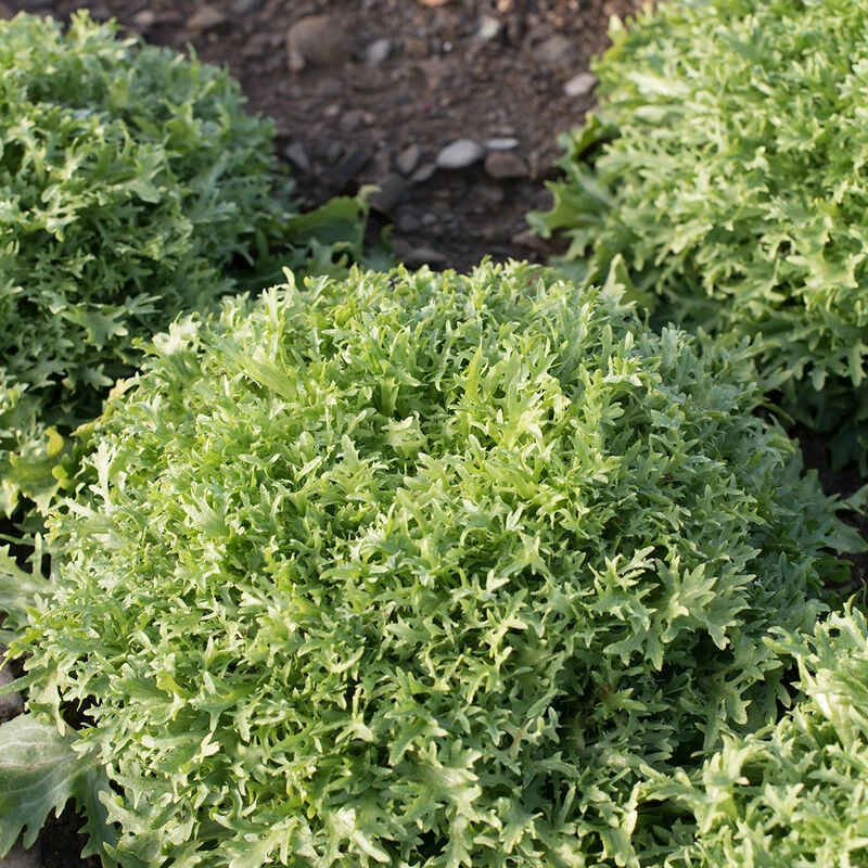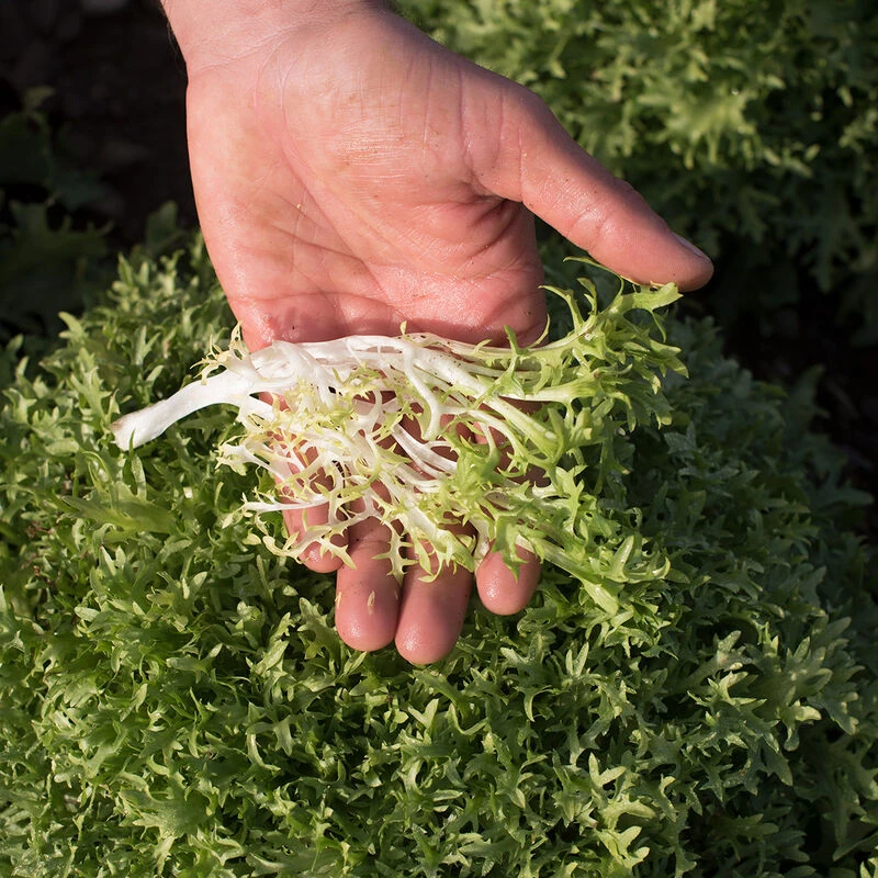 Beautiful, ruffled head of light green leaves that are deeply cut and toothed. At maturity, its heart blanches to reveal creamy, sweet leaves. More tipburn tolerant and slower to bolt than other chicories of this type. Suitable for warm-season production. Also known as frisรฉe or Trรฉs Fine Maraรฎchรจre. Also available with NOP-compliant pelleting. USDA Certified Organic.