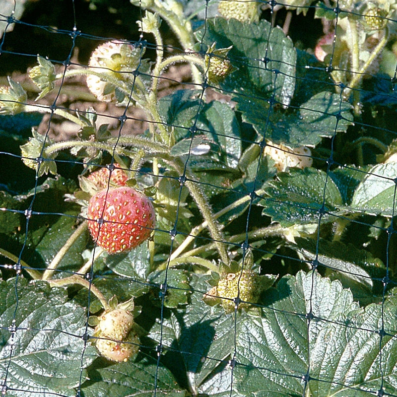 This lightweight plastic net is designed to protect strawberries, blueberries, and fruiting trees from marauding birds without bending branches or damaging fruit. UV-stabilized, reusable, and recyclable. The 3/4″ x 3/4″ mesh size unwraps to 14′ x 30′. To use, cover crop and anchor with row cover staples (#9859).