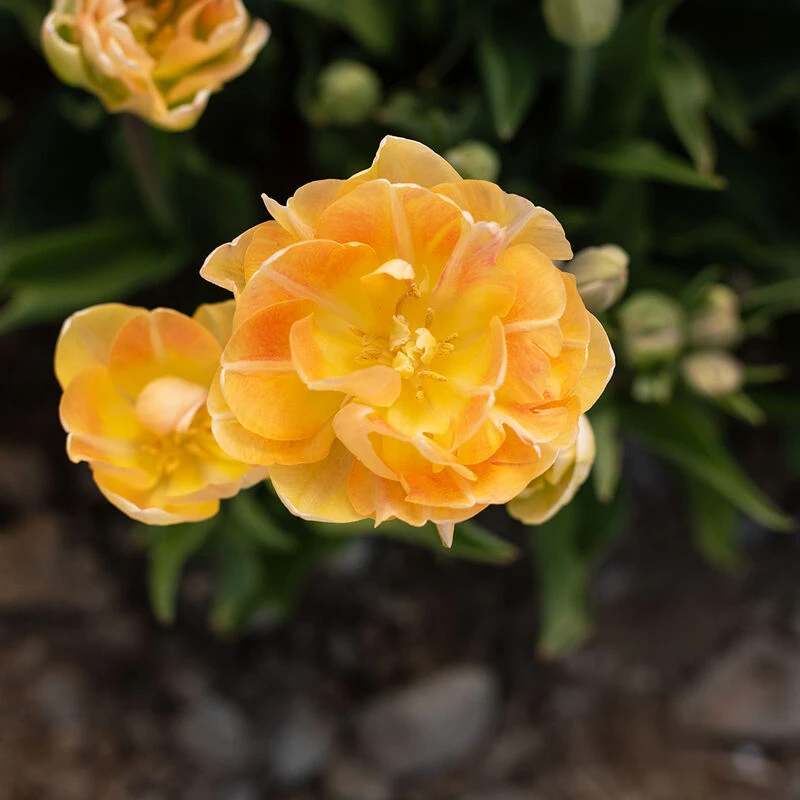 2 1/2โ3″ double blooms open in shades of soft yellow and peach-apricot. As blooms mature, the peach-apricot color deepens. Most plants produce multiple buds, often developing more than one bloom per stem. Lightly fragrant. Pairs nicely with Finola and Crรจme Upstar. NOTE: Bulbs do not come pre-chilled; if growing in hardiness Zones 8โ10, see growing information (below) for pre-chilling instructions.