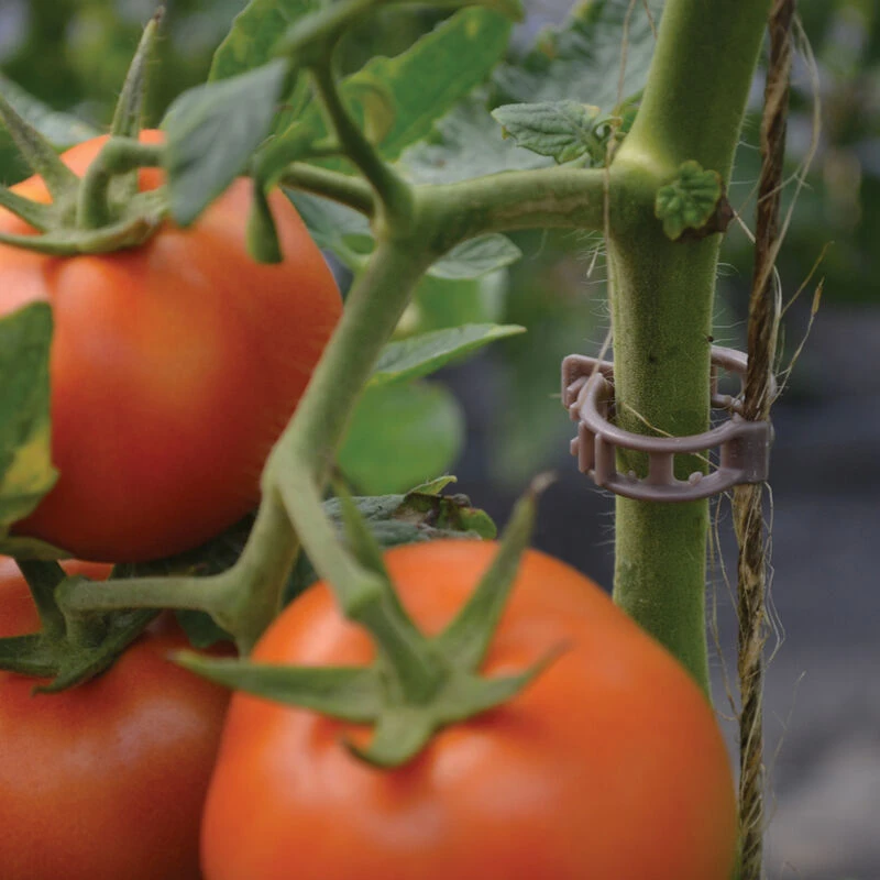 Use with biodegradable twine and compost with your crop debris. No more reclaiming plastic pieces. Made from non-GMO corn starch, it fully composts in approx. 13 weeks. Accommodates stems up to 7/8″ (22 mm). Not OMRI listed. NOTE: We recommend use with biodegradable twine (like #9241 Sisal Trellis Twine). Do not leave bags of clips in the greenhouse or other sunny places.
