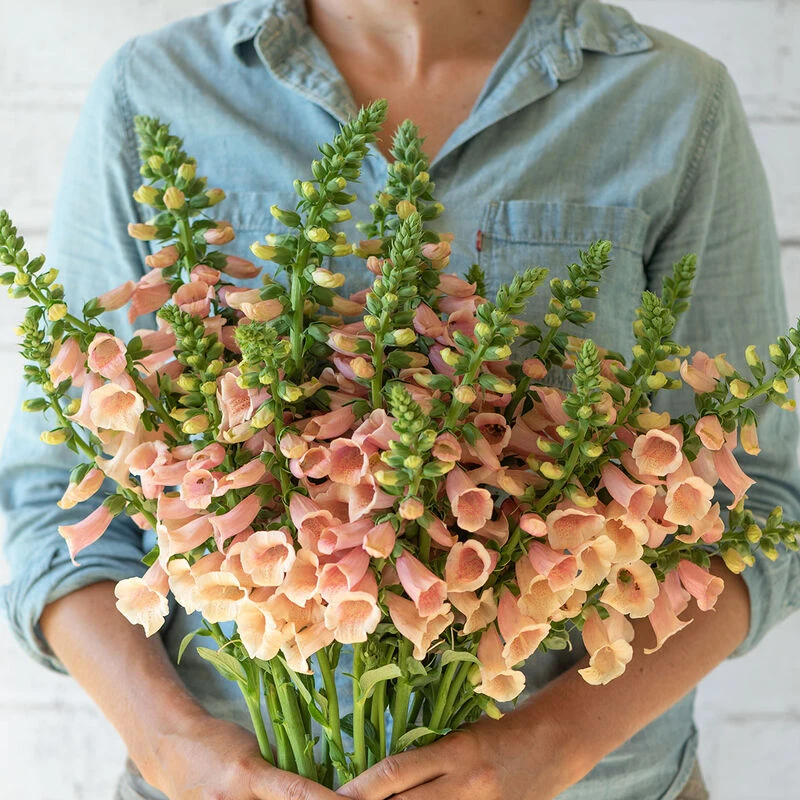 Bells sit closely to one another on sturdy stems borne on vigorous plants. Exquisite color is a shade somewhere between creamy peach and pale shell-pink. Peach color is most intense at the lightly freckled throat. Bells form on one side of the stem. Best when treated as a fall or spring-planted hardy annual, as winter survival is generally poor when treated as a perennial. Pelleted seeds.