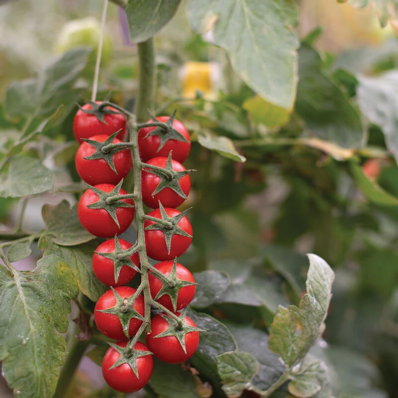 Very early, with even ripening for whole-cluster harvest. A standout in this class for its rich, sweet flavor. Attractive calyx, tight cluster spacing, firm fruit attachment, and exceptional shelf life make it ideal for marketing on the vine. The leaf mold resistance is a necessary advantage for indoor growers. Indeterminate. NOTE: For unheated tunnels, we recommend pruning to 10โ16 fruits per cluster for best results.