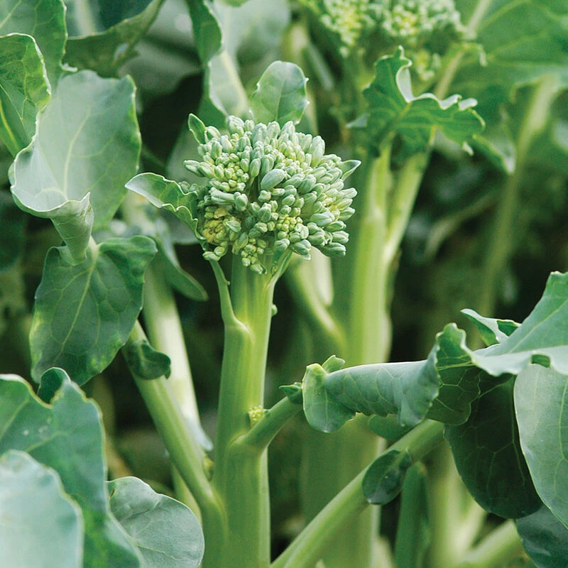 Uniform, vigorous, dark green plants produce jumbo-size florets that resemble mini heads of broccoli, and have an excellent, sweet, broccoli flavor. This sprouting broccoli produces ample amounts of side shoots when plants are spaced 12–18″ apart. For a single crop harvest, space plants 6–8″ apart. Pinching not necessary.