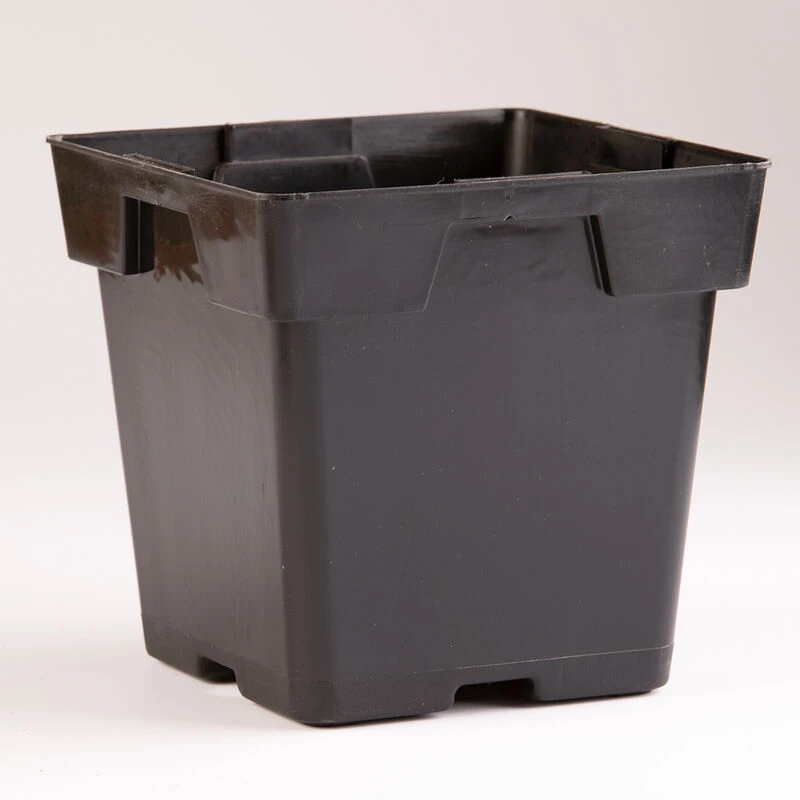 5 1/4″ square by 5 1/2″ deep. 8 pots fit in a standard 1020 tray. With drainage holes.