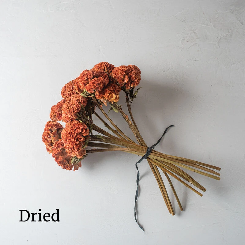 2–7″ densely folded orange combs make useful fresh or dried cut flowers. Very similar to the Chief Series in days to maturity, plant growth habit, and bloom size. Also known as cockscomb and crested cock’s comb.