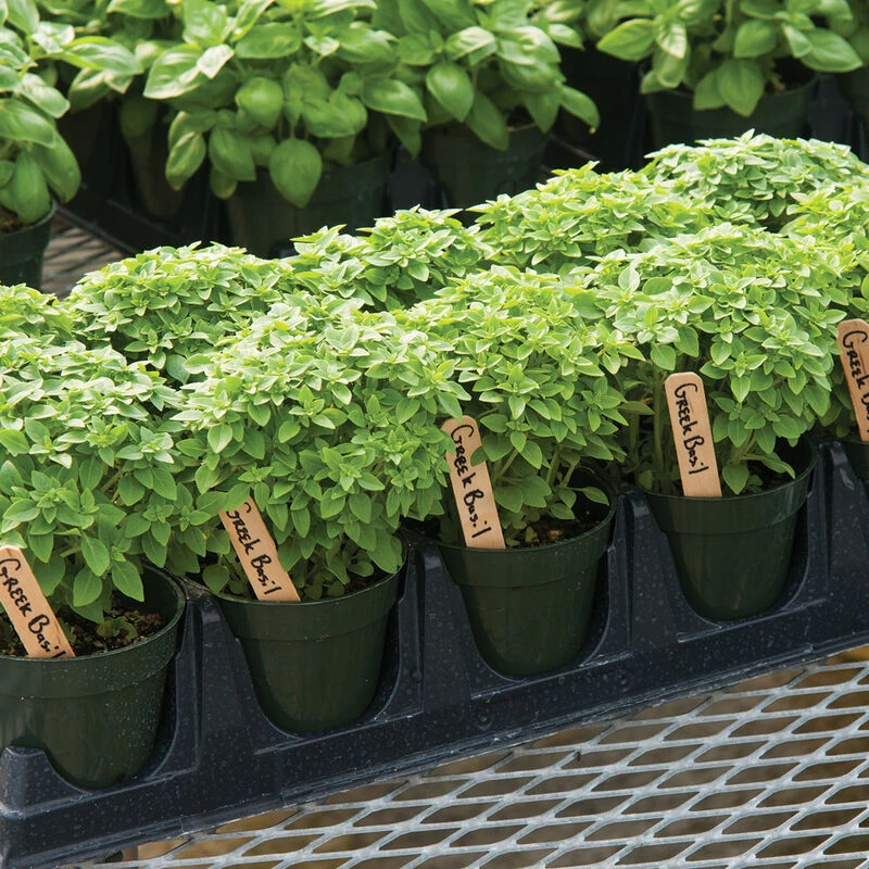Genuine spicy-sweet, Greek basil flavor. Similar to Spicy Bush, but plants are about half the size. Neat, uniform plants perfect for pots and garden beds. 1/2″ long leaves. One plant perfectly fills a 3-6″ pot with an attractive boxwood-like, mounded or domed appearance. Small, flavorful leaves make convenient garnishes and are easily pinched from the plant or stem and sprinkled over dishes. Ht. 6-8″. Similar to Piccolino, which it replaced.
