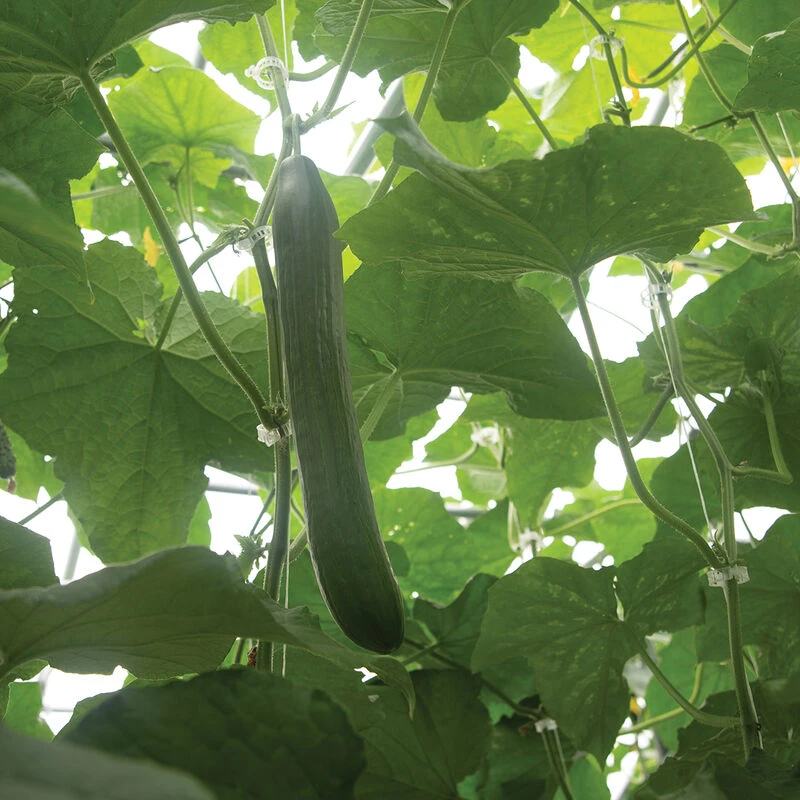Poniente offers an upgrade from Tyria with added resistance to cucumber mosaic virus (CMV) and cucumber vein yellowing virus (CVYV). Bitter-free, 12โ13″ fruits grow straight with trellising and fill out well. Excellent vigor and yield potential. Gynoecious and parthenocarpic. USDA Certified Organic.