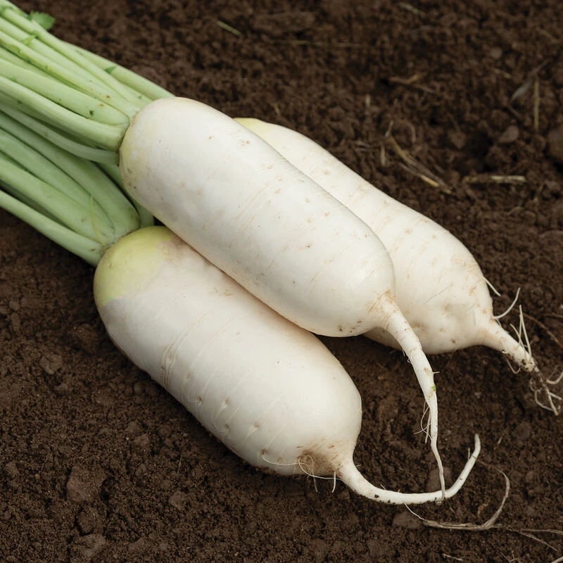 | CULTURE | Daikon and Korean radishes require friable, well-drained soils with a pH range of 5.8โ6.8. Work soil deeply, in raised beds if possible, for straight roots and ease of harvest. Sow 10 seeds/ft., thinning to 4โ6" apart, rows 18" apart. Note planting seasons in variety descriptions to reduce bolting. |