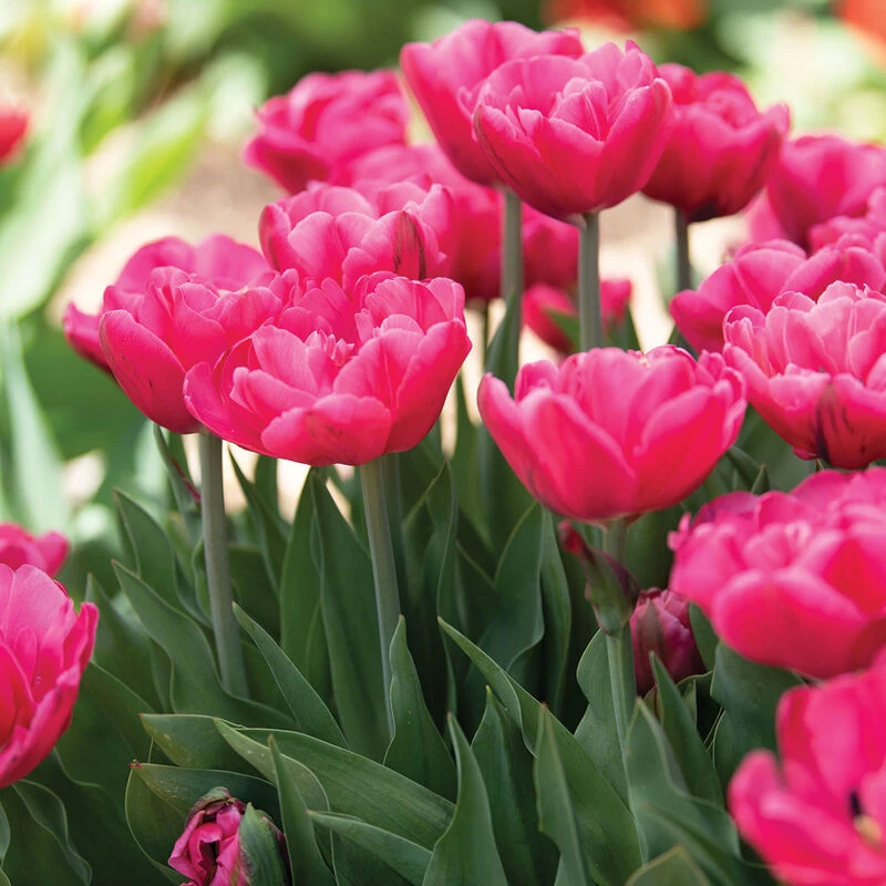 Double blooms. Stems are more compact at 12โ18″ but are very sturdy and have a pleasant, dark purple hue. Open blooms are typically 2 1/2โ3 1/2″ wide and 1 1/2โ2″ tall. Attractive, unopened buds are rose colored with green and purple flames on outer petals. NOTE: Bulbs do not come pre-chilled; if growing in hardiness Zones 8โ10, see growing information (below) for pre-chilling instructions.